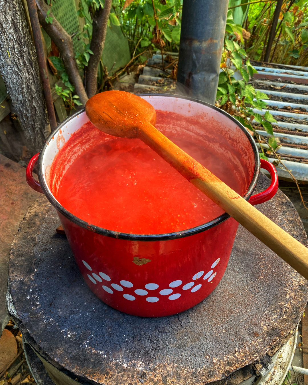 Ingrediente: roșii zemoase și dulci dintr-o singură grădină, sare, lemn de foc încet.