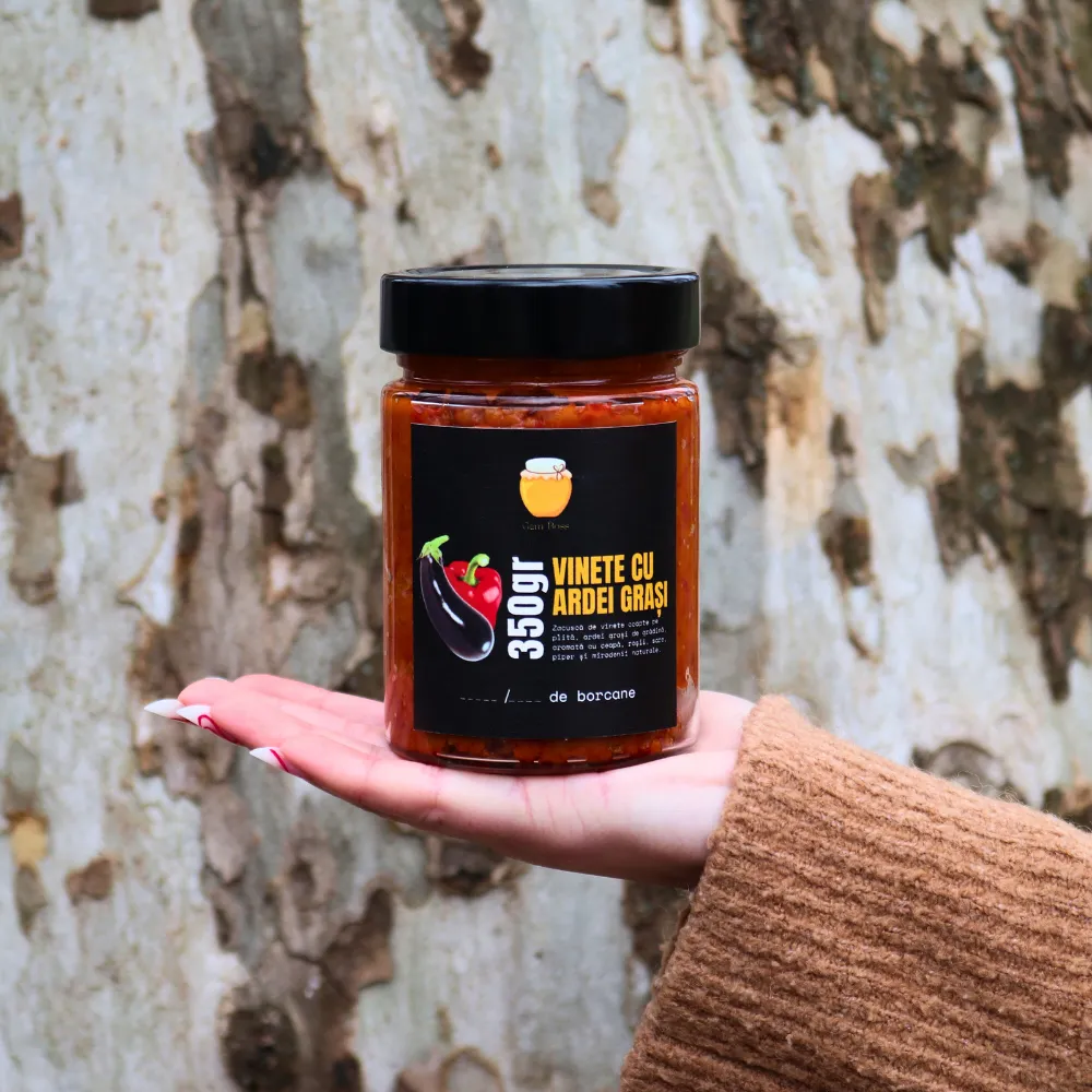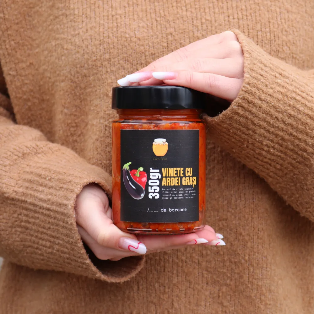 Zacusca noastră de vinete coapte pe plită miroase a fum când o deschizi. Îți aduce aminte de iernile la bunici. Fă-i retur, dacă nu e conformă.